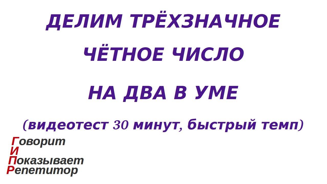 ГИПР - Делим трёхзначное чётное число на 2 в уме, видеотест 30 минут, быстрый темп
