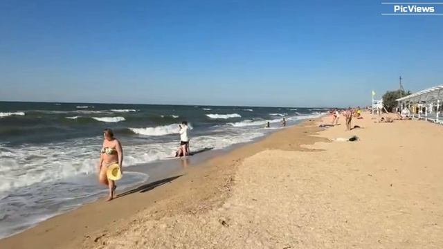 Голубицкая пляж Белый берег сегодня 16 июля 2025. Какая погода в Голубицкой сейчас. Море, обстановка