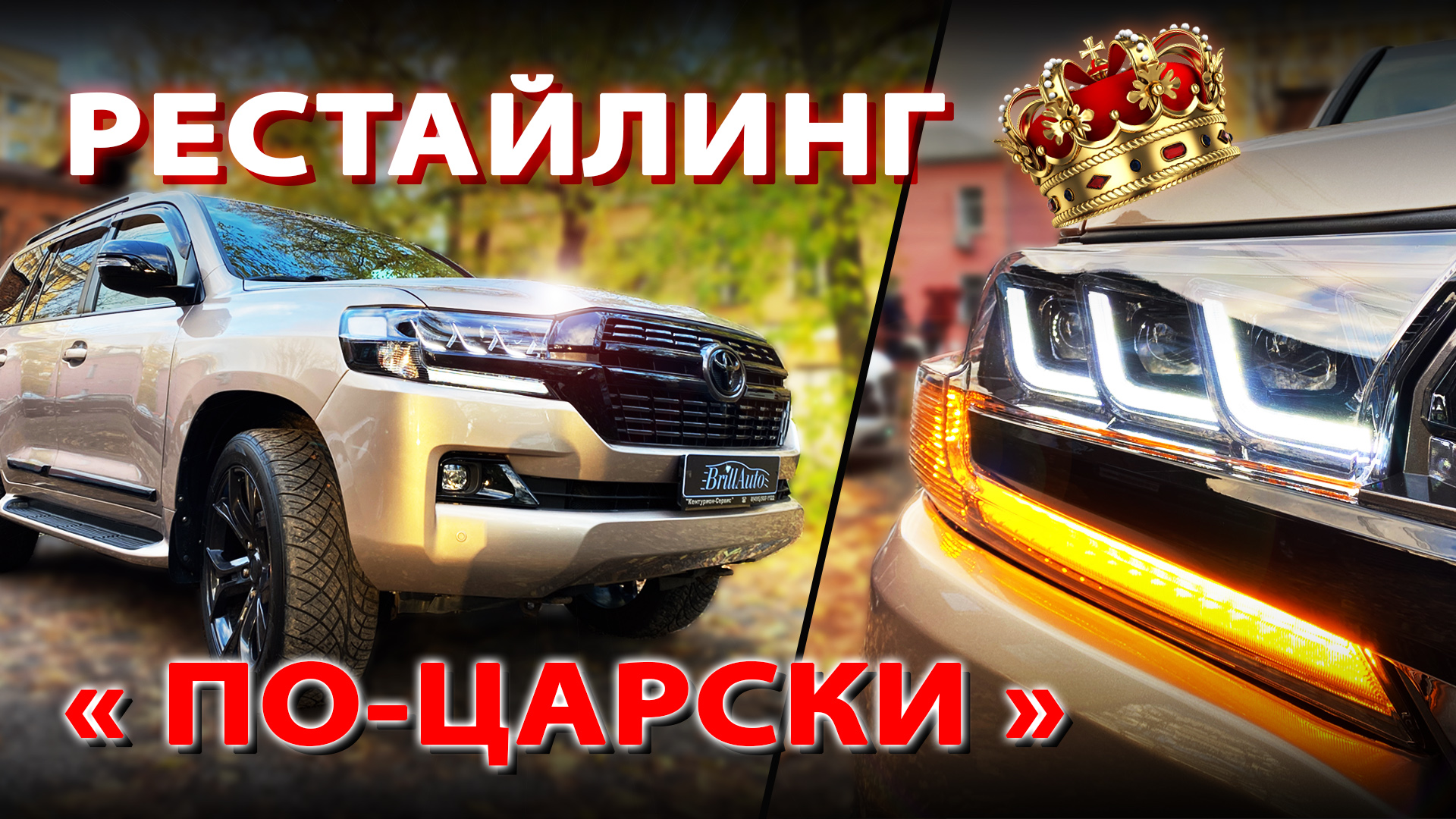 Что может объединять машину и осень? Кончено цвет ЗОЛОТА! Именно на фоне золотых листьев мы сняли очередной обзор рестайлинга Land Cruiser 200 из 2008 в 2021 год на авто золотого цвета. Ключевой особенностью данной установки комплекта рестайлинга на Ленд Крузер 200 был черный глянцевый антихром, фары в стиле Лексус и полный отказ от юбок/обвесов. Базовый набор комплекта рестайлинга Крузера 200, традиционно, включает в себя новый капот, крылья, крышку багажника, бампера, а также замену оптики "в круг". Неоднократно переделка Крузака у нас делалась с установкой фар в стиле Lexus, и в случае с авто золотого цвета они подошли как нельзя кстати. А вот задняя оптика - новинка для нас. Задние фонари и задние противотуманки на данном авто заслуживают отдельного внимания. Это первый обзор, на котором нам удалось рестайлинг снять ТЛК200 непосредственно с новыми бегающими LED стопами и противотуманками с анимацией. Ранее этот набор оптики мы ставили на рестайлинг 200 07-11 года, и как ожидалось, на полном рестайлинге Land Cruiser 200, да еще и с антихромом, результат получился более чем достойный. Выбор глянцевого или матового антихрома, конечно, дело субъективное. Полный рестайлинг Ленд Крузер 200 мы уде неоднократно делали с глянцевым антихромом, а рестайлинг LC200 в стиле 16-21 года (без замены железа) делали с матовым анти-хромом. Какой из них выглядит лучше? Оставляем этот вопрос для Вашей оценки! Если вы задаетесь вопросом "где сделать рестайлинг Ленд Крузер?" или "сколько будет стоить рестайлинг Land Cruiser 200?" - обращайтесь, посчитаем и проконсультируем по всем нюансам и тонкостям этого дела. Все машины индивидуальны и требуют индивидуальных расчетов исходя из состояния и пожеланий клиента. Сделать рестайлинг Крузака можно разными способами и за разную стоимость. ❗ПОЛУЧИТЬ КОНСУЛЬТАЦИЮ И ЗАКАЗАТЬ МОЖНО ТУТ: ❗ ❗https://brillauto.ru/contacts❗ ? Узнать цены, заказать комплекты, адрес: https://brillauto.ru ? +7 925 524-12-54 (звонки, WhatsUp, Viber) ? Доставка по РФ, Беларусь, Казахстан! ? AVITO: https://avito.ru/brillauto ? WILDBERRIES: https://wildberries.ru/seller/152565 ? VK: https://vk.com/brillauto ? TELEGRAM: https://t.me/brill_auto ? ZEN: https://zen.yandex.ru/brillauto ? RUTUBE: https://rutube.ru/channel/26046776 #landcruiser #landcruiser200 #lc200 #лендкрузер #крузак #крузак200 #тюнинг #рестайлинг