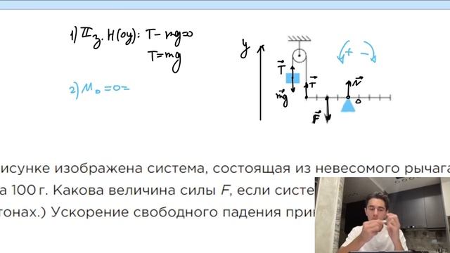 На рисунке изображена система, состоящая из невесомого рычага и идеального блока - №23150