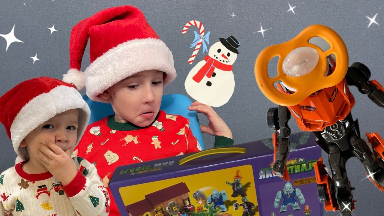 Дед Мороз исполнил наши желания и подарил нам подарки на Новый Год! Саше- РОБОТА-СОСКУ, а мне - КОНСТРУКТОР растения против ЗОМБИ!