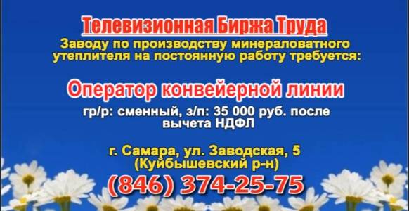 Вакансии и телефоны прямых работодателей в специализированной программе по трудоустройству "Телевизионная Биржа Труда" - г.САМАРА, г.ТОЛЬЯТТИ
