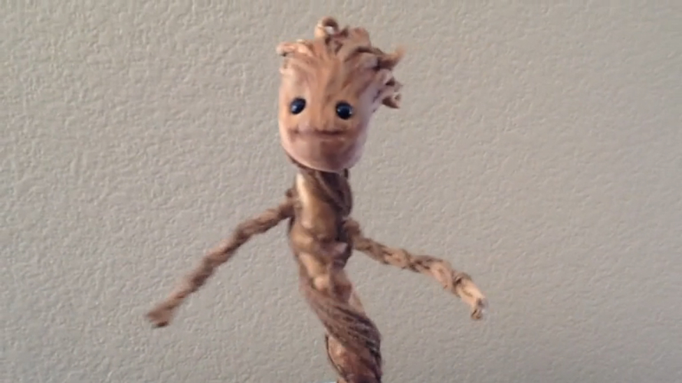 Очаровательный косплей. Создатель этого чуда, Patrick Delahanty, купил обычный пляшущий игрушечный цветок. Немного войнока, верёвки и краски, голова куклы – и малыш-Грут может танцевать.