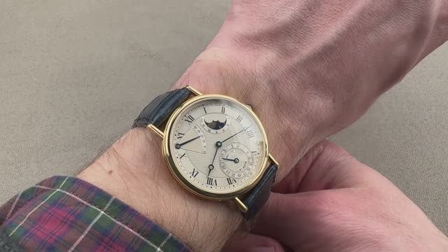 *перевести видео можно в Яндекс браузере Часы Breguet Classique 3137 Moonphase (3137BA11986) выполнены из желтого золота 18 карат толщиной 35,5 мм и обрамлены серебряным циферблатом на темно-синем ремешке из кожи аллигатора. Характеристики этих часов Breguet Classique Power Reserve включают в себя часы, минуты, секунды, дату, фазу Луны и индикатор запаса хода. Толщина этих часов Breguet составляет 8 мм, а расстояние от выступа до выступа составляет 43,4 мм. Для получения более подробной информации ознакомьтесь с полным обзором запаса хода Breguet Classique.