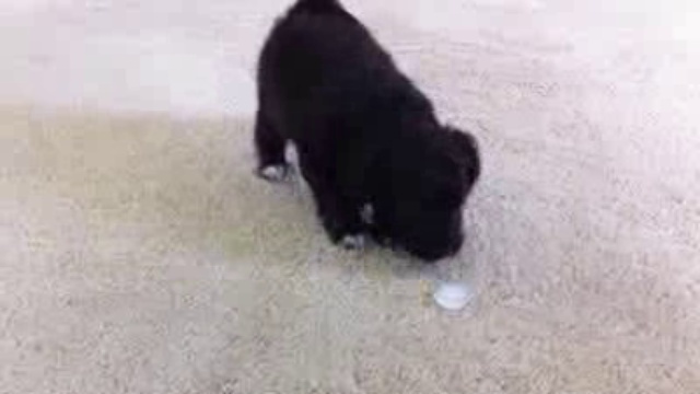 Щенок против кусочка льда