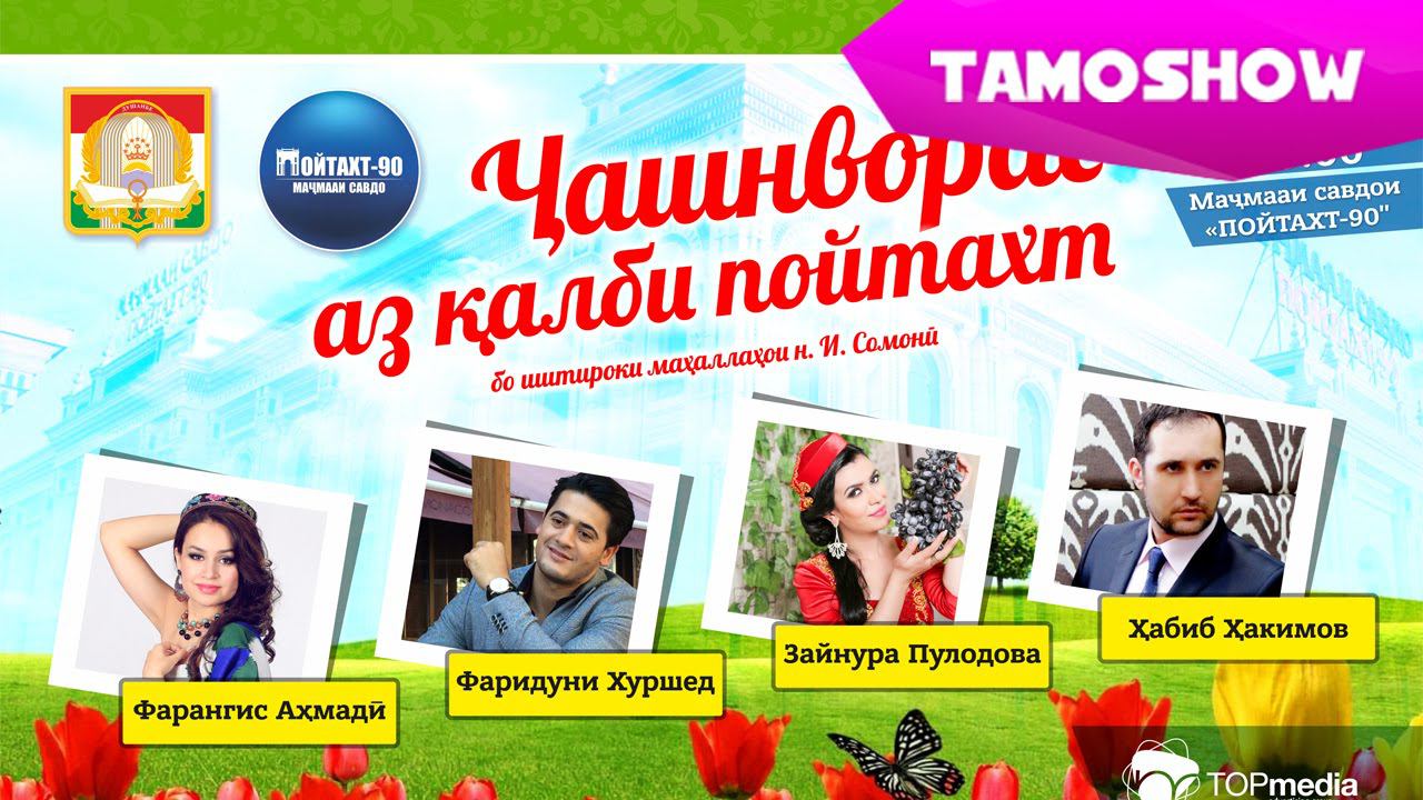 Торговый комплекс "Пойтахт-90" при поддержке Хукумата города Душанбе приглашал на праздник Навруз, который состоялся 21 марта на территории ТК "Пойтахт-90", организованный Хукуматом района Исмоили Сомони и администрацией торгового комплекса с участием народных исполнителей: Зайнуры Пулодовой, Фарангис Ахмади, Фаридуни Хуршед, Хабиба Хакимова и других, при участии компании "TopMedia". Аз соати 9 субҳи рӯзи 21 март дар маркази Душанбе барномаи идонаи наврӯзӣ зери унвони «Ҷашнворае аз қалби пойтахт» баргузор шуд. Ин барнома дар назди маҷмааи савдои «Пойтахт-90» ба таври ройгон ташкил шуда, ҳама сокинони Душанбе тавонистанд онро тамошо кунанд. Ба иттилои яке аз ташаббускорони ин барнома продюсер Беҳрӯз Зеваров, дар барномаи идонаи наврӯзӣ овозхонҳои маҳбуб - Зайнура Пӯлодова, Фаридуни Хуршед, Фарангис, Ҳабиб Ҳакимов ва бисёр дигарон ҳунарнамоӣ карданд.