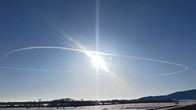 Вот такое зрелище). Трасса Орск-Оренбург, самолёт нарисовал круг, вокруг солнца.