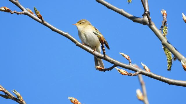 Пеночка весничка поёт, наблюдение птиц в Новгородской области, 1 мая 2024