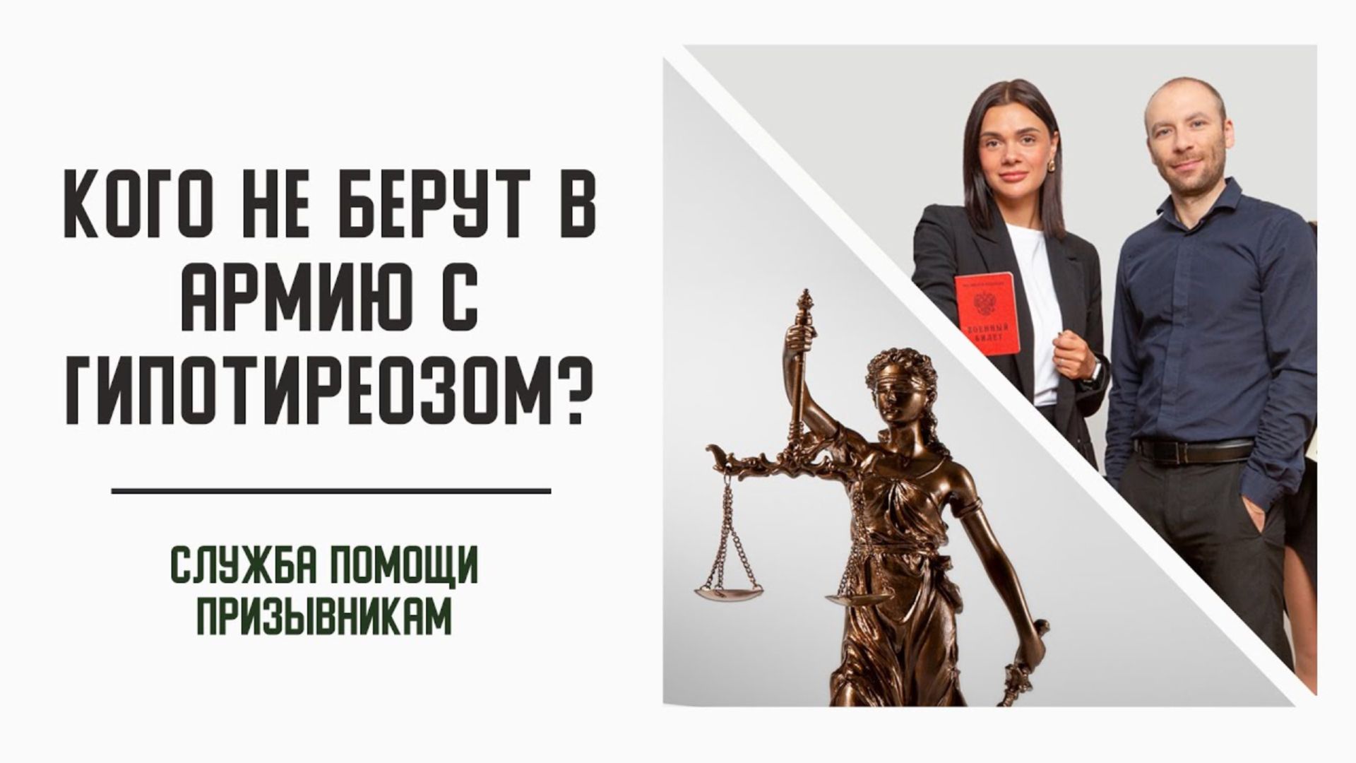 Гипотиреоз – заболевание, вызванное недостаточностью гормонов щитовидной железы. Я встречаю его не очень часто – примерно у одного призывника из тридцати. В этом видео я расскажу про особенности этого заболевания, а также критерии получения военного билета. 0:01 Вступление 0:18 Как я определяю, смогу ли я взять в работу призывника с гипотиреозом? 0:55 Симптомы гипотиреоза 1:38 На какую статью Расписания болезней стоит обратить внимание призывникам с гипотиреозом? 1:52 Как подтвердить гипотиреоз в военкомате? Дополнительная информация о гипотиреозе есть в нашей статье https://clck.ru/32pxQt Здесь вы можете узнать про нас больше: Сайт — https://clck.ru/rffoe Вконтакте — https://vk.com/armyhelp