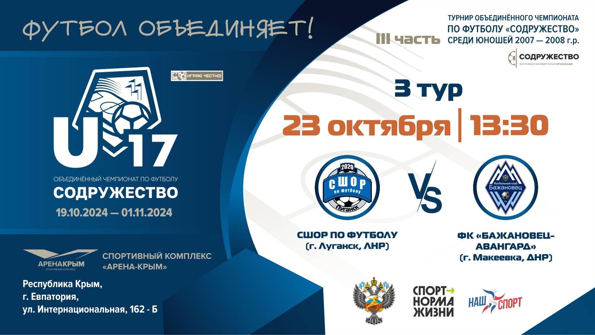 3 ТУР | U-17 | ГБУ ДО ЛНР «СШОР по футболу»(г. Луганск, ЛНР) vs ФК "Бажановец-Авангард"(г. Макеевка)