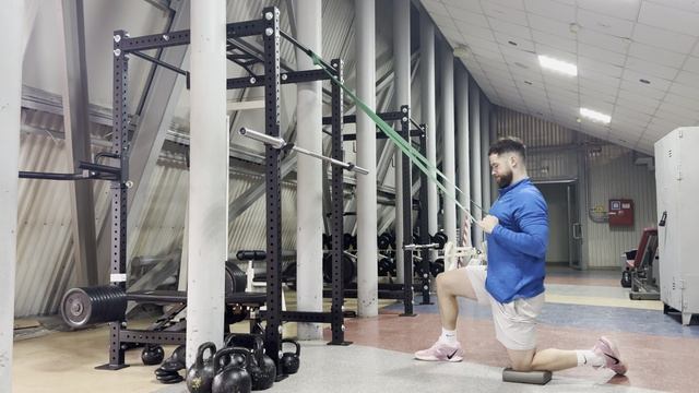 Тяга резины стоя на колене