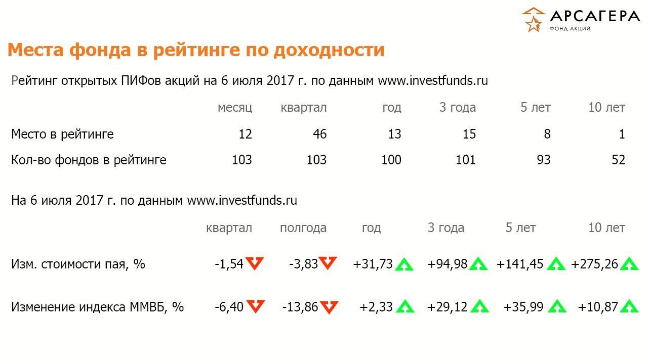 Наши фонды. Наши фонды. ОПИФА «Арсагера - фонд акций» с 23.06.2017 по 07.07.2017
