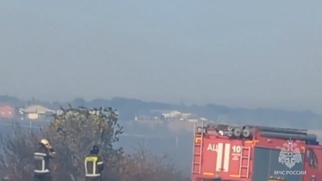 Тушение ландшафтного пожара по рангу 2 в ст. Мищкинская Аксайского района, 30.08.2025