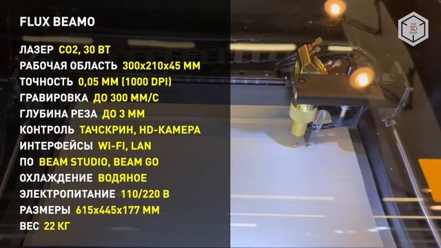https://happy-buy.ru/K1f45lb.php - купить на Аliexpress (Лазерный гравер TS2 80 Вт с двумя деревьями, с автономным управлением Wi-Fi, датчиком пламени и управлением через приложение) Внимание! Если ссылка ведет не на тот продукт, который Вы искали, воспользуйтесь поиском по сайту! Обзор FLUX Beamo: настольный компактный лазерный станок для резки и гравировки любых материалов Полный обзор читайте в блоге Станки с ЧПУ Всем привет! С вами Top 3D Shop и в очередном обзоре мы рассказываем о настольном лазерном резаке-гравере Beamo [бИмо], разработанном тайваньской компанией FLUX [флакс]. Beamo — компактный настольный резак и гравер, оснащенный 30-ваттным углекислотным лазером, мощности которого хватает для полноценной обработки широкого ассортимента материалов. Корпус устройства выполнен из металла и оснащен прозрачной акриловой крышкой. Размеры рабочей области станка имеют ту же длину и ширину, что и обычный лист офисной бумаги. Небольшой диаметр пятна лазера позволяет гравировать с точностью до пяти сотых миллиметра и разрешением 1000 точек на дюйм. Применение встроенной HD-камеры значительно упрощает и ускоряет процесс, привносит в работу элементы дополненной реальности. После размещения заготовки в рабочем поле устройства пользователь видит на экране компьютера заготовку и рисунок в режиме наложения. По сути, еще до начала работы станка можно понять каким будет конечный результат. Станок поставляется с программным обеспечением Beam Studio, работающим под Windows и macOS. Также доступно приложение Beam Go для мобильных устройств. Программное обеспечение позволяет редактировать текстовые и векторные файлы, а также изменять растровые изображения прямо в приложении. Beam Studio поддерживает импорт файлов и проектов из Adobe Illustrator, AutoCAD, Inkscape, CorelDRAW, Microsoft Word. Программное обеспечение работает с форматами JPG, PNG, SVG или DXF. Передача готовых файлов на печать возможна через USB-, Ethernet- или вайфай-соединение. FLUX Beamo поддерживает работу с деревом, пластиками, тканями, кожей, стеклом и даже некоторыми металлами. Так, станок легко справляется с резкой фанеры толщиной до 4 миллиметров. Важная особенность FLUX Beamo — съемная нижняя крышка. Это позволяет увеличить рабочую зону станка по высоте и работать с заготовками любого размера. Автоматическая остановка лазера при открытом станке, внутренняя система водяного охлаждения, аварийный останов одним нажатием — инженеры компании серьезно позаботились о безопасности. Разработчик рекомендует к приобретению модуль очистки воздуха Beam Air с четырехступенчатой системой фильтрации. В число полезных опциональных приспособлений для FLUX Beamo также входят — поворотный модуль для гравировки на цилиндрических поверхностях, насадка для автофокусировки, диодный лазер для более быстрой гравировки и глубокой резки. Вы смотрели обзор настольного лазерного станка FLUX Beamo, подготовленный компанией Top 3D Shop. Подписывайтесь, комментируйте, ставьте лайки. До скорого! FLUX BEAMO ЛАЗЕР CO2, 30 ВТ РАБОЧАЯ ОБЛАСТЬ 300x210x45 ММ ТОЧНОСТЬ 0,05 ММ (1000 DPI) ГРАВИРОВКА ДО 300 ММ/С ГЛУБИНА РЕЗА ДО 3 ММ КОНТРОЛЬ ТАЧСКРИН, HD-КАМЕРА ИНТЕРФЕЙСЫ WI-FI, LAN ПО BEAM STUDIO, BEAM GO ОХЛАЖДЕНИЕ ВОДЯНОЕ ЭЛЕКТРОПИТАНИЕ: 110/220 В РАЗМЕРЫ, ВЕС 615x445x177 ММ, 22 КГ ----- ?WAZER: настольный станок для гидроабразивной резки - гидрорезка для металлов, пластика, стекла ?Автоматизация обслуживания токарных и фрезерных станков роботами и коботами. Вебинар Top 