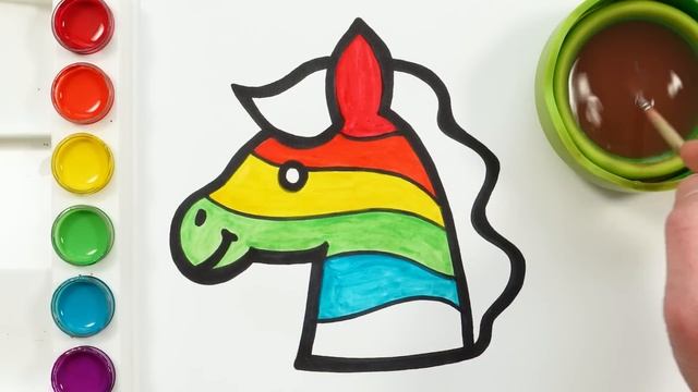 Радужная лошадка! Рисование, раскраска для детей и малышей! Давайте нарисуем, раскрасим животных