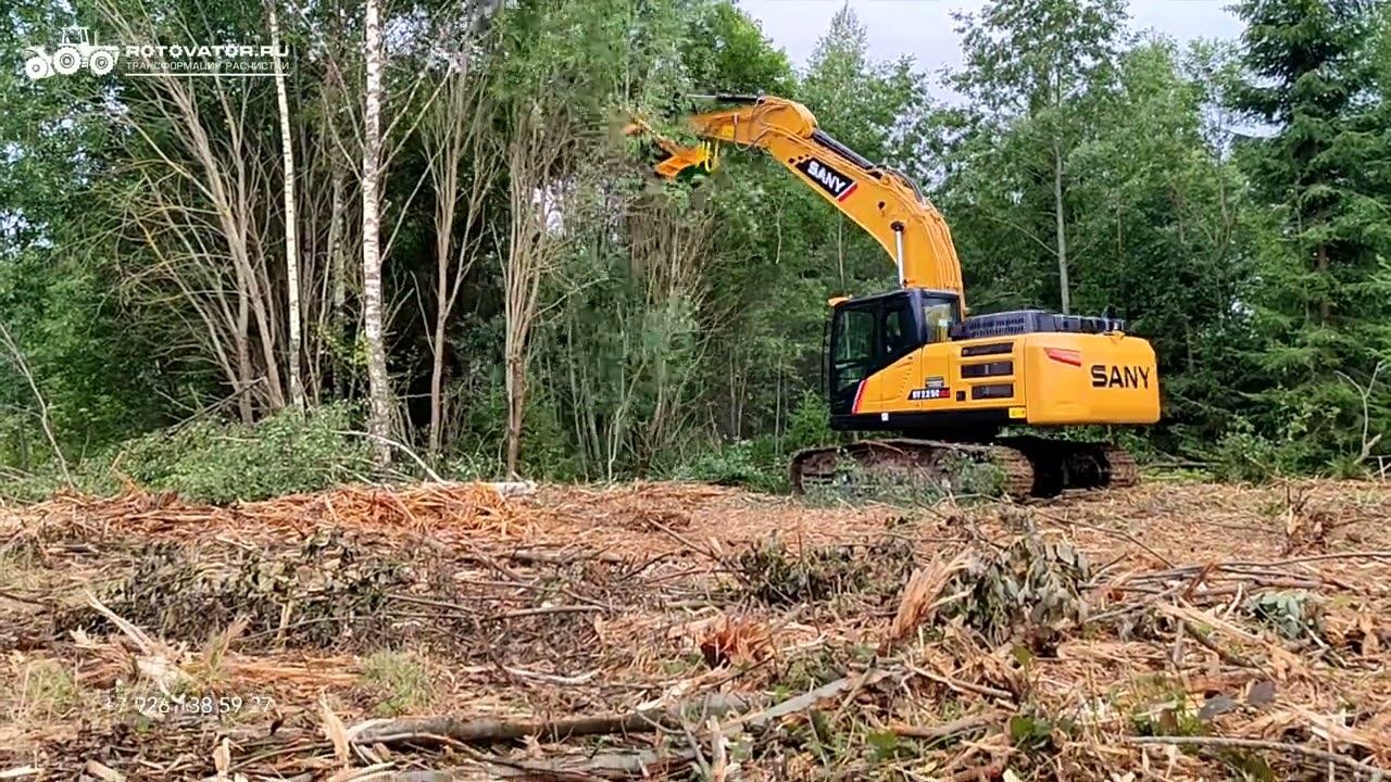 В лоскуты разорвало дерево мульчером Serrat F4 T1600 Sany 22 тонны