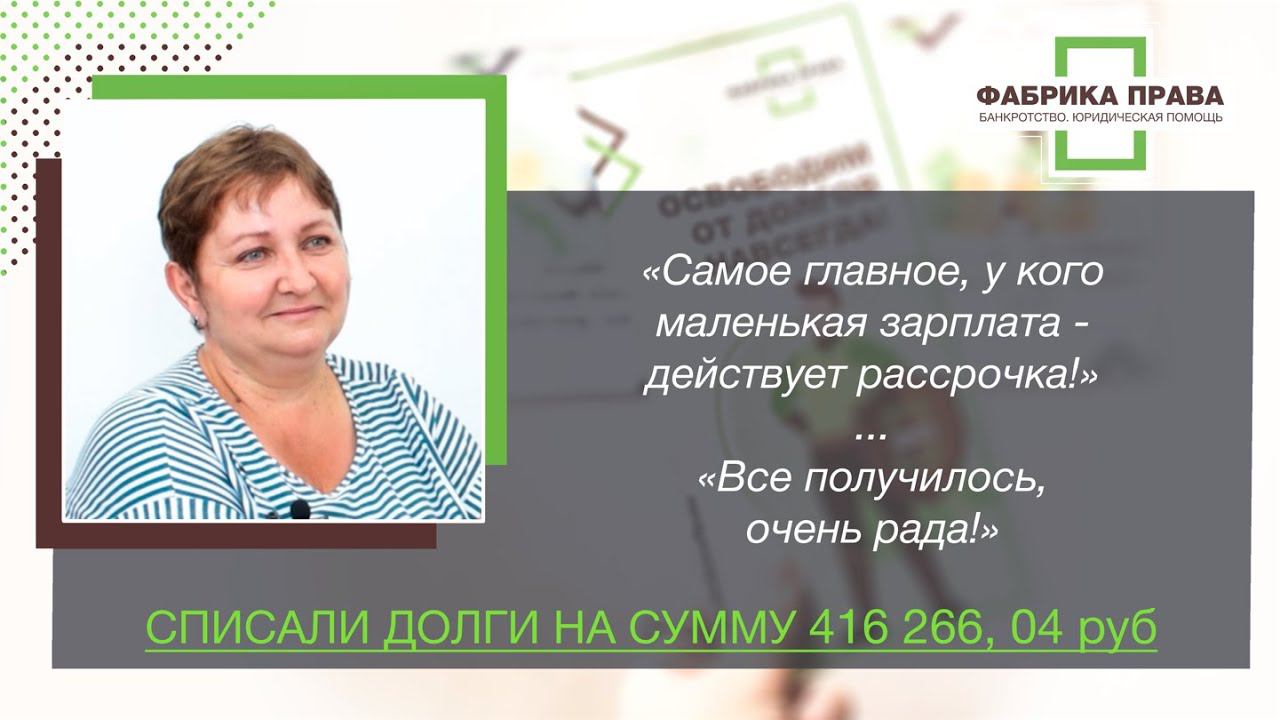 Наталья Ивановна теперь свободна от всех задолженностей!! Мы от всей души поздравляем Наталью с началом новой жизни и рады, что она прошла этот путь с нами! В этом видео она делится своими впечатлениями от сотрудничества с нашей компанией. Приятного просмотра! #списатьдолг #банкрот #помощьюриста #банкротствофизлиц