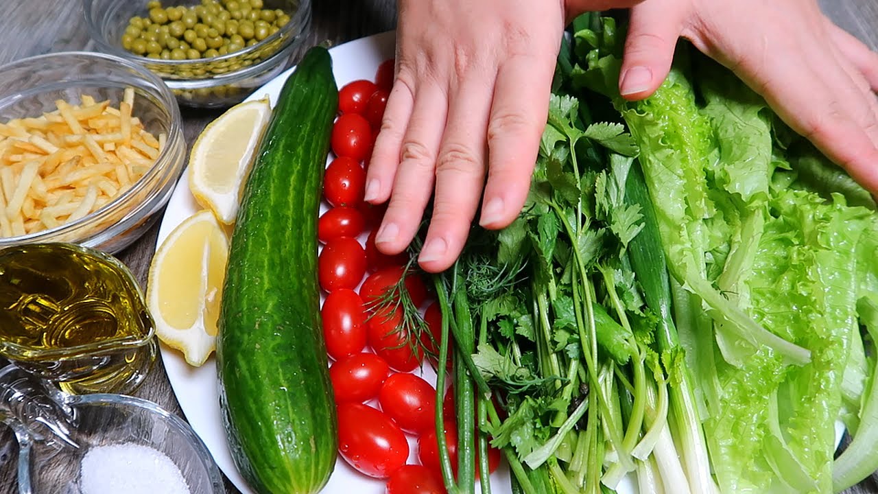 Смотрите наши видео, подписывайтесь на канал! Instagram: https://www.instagram.com/tasty_recipes_olga_kim/ Ингредиенты: Листья салата Лук зеленый Кинза Укроп Помидоры черри - 180 грамм, Огурец - 250 грамм, Лимон - 2 дольки, Хрустящая соломка - 50 грамм, Зеленый горошек - 100 грамм, Масло оливковое - 50 мл., Соль по вкусу. ПОМОЩЬ КАНАЛУ: ✅ Карта Тинькофф: по номеру +79654488392 ✅ DonationAlerts: https://www.donationalerts.com/r/vkusnyereceptyok ✅ QIWI-кошелек: +79654488392 ✅ Кошелек ЮMoney 4100116436244512 КУХОННЫЕ ПРИНАДЛЕЖНОСТИ, КОТОРЫЕ ИСПОЛЬЗУЮ В СВОИХ ВИДЕО ✅ ТЁРКА: https://fas.st/7f-6DE ✅ ГРИЛЬ: https://goo.su/c6Tc ✅ ПЛАНЕТАРНЫЙ МИКСЕР: https://goo.su/bhOq ✅ БЛЕНДЕР ДЛЯ ТОФУ: https://fas.st/lm-zB ✅ РИСОВАРКА: https://fas.st/6x9kd ✅ ТЕСТОРАСКАТОЧНАЯ МАШИНКА: https://fas.st/5g8607 ✅ ЗАКАТОЧНАЯ МАШИНКА: https://fas.st/4a44Cd