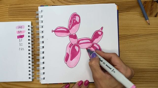 Рисунок скетч маркерами "Воздушная собака" для скетчбука | Срисовка картинки для начинающих