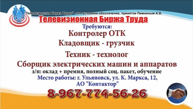 Вакансии и телефоны прямых работодателей в специализированной программе по трудоустройству "Телевизионная Биржа Труда" - г.Ульяновск