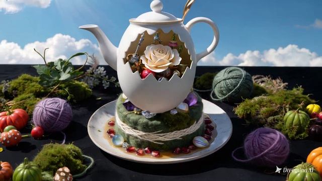 dreamina-2026-03-09-6333-pie in the sky, teapot, spoons are flyin...