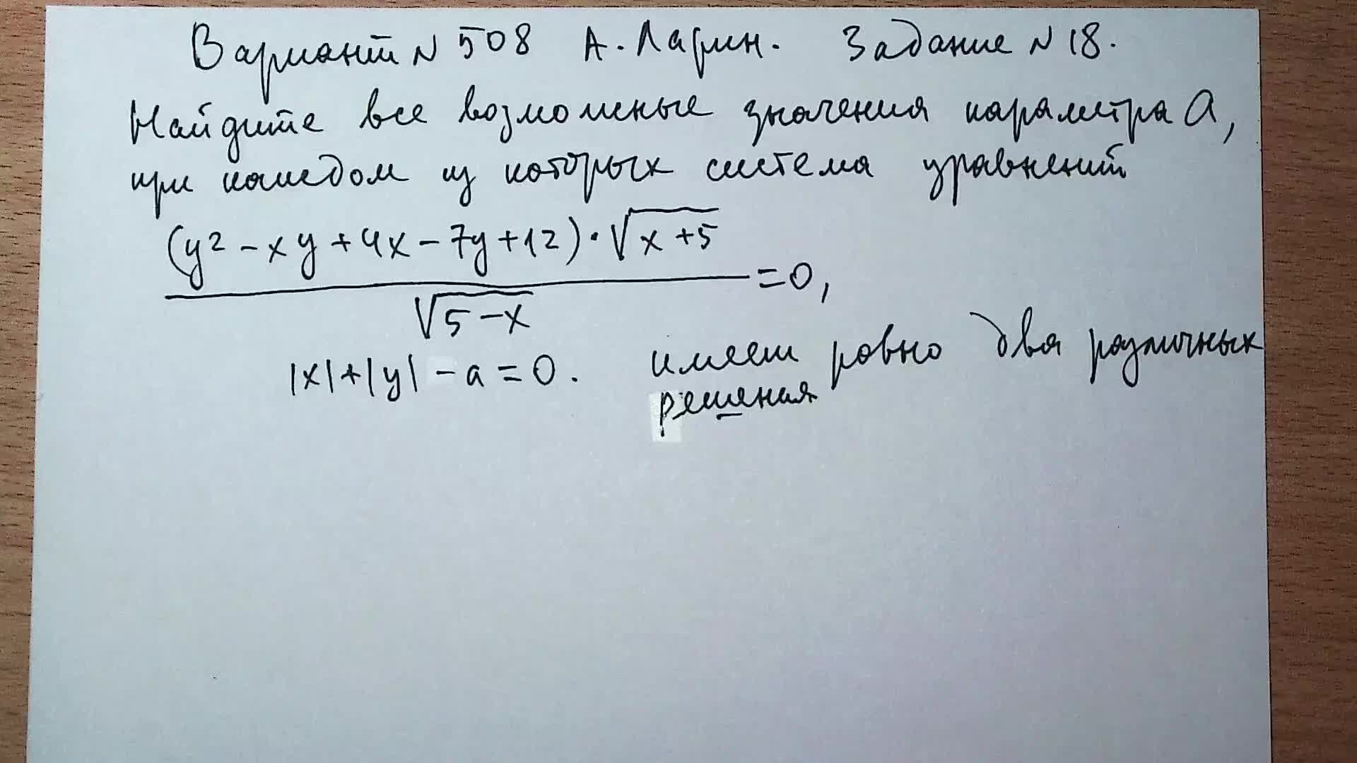 Вариант № 508 А. Ларин. Задание №18. Система уравнений с параметром.