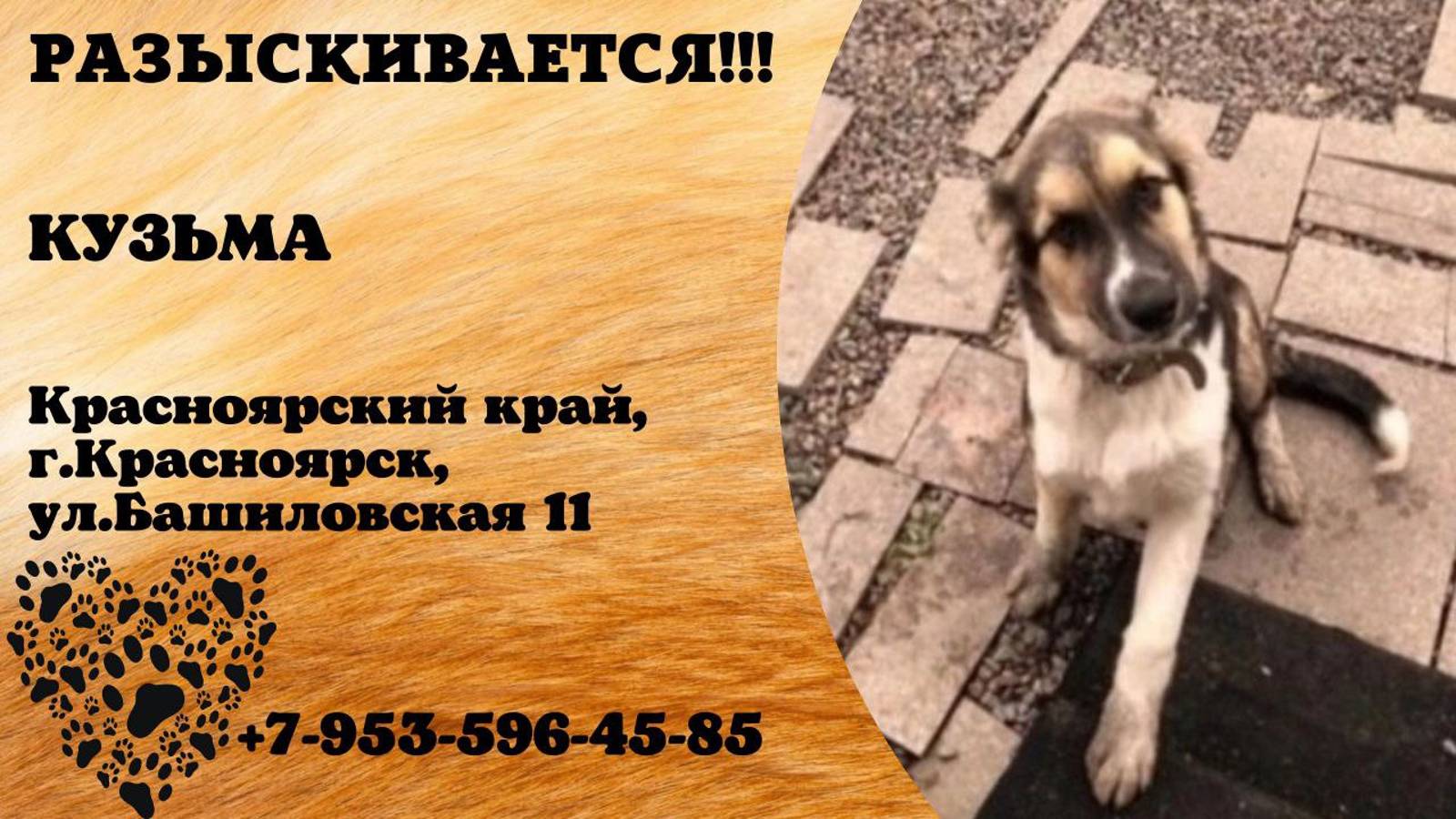 Красноярский Красноярск Пропала собака Потеряли собаку,фото годичной давности, окрас тот же, шерсть длиннее и сам крупнее стал. Уже терялся раньше, в январе, но нашли.ул.Башиловская 11 Сейчас в районе ТЭЦ-3 видели , на Спортзале видели. Может сам ездить в автобусе, пока не выгонят. Собаку зовут Кузьма ☎️89535964585 Инфо https://vk.com/wall-198815410_151165 Автор https://vk.com/id867339046