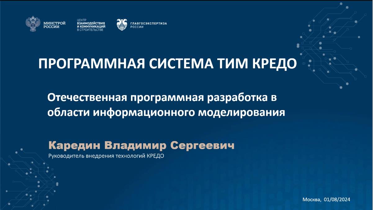 00:23 Описание Программной системы ТИМ КРЕДО 02:41 ТИМ КРЕДО на стадии инженерных изысканий 05:05 ТИМ КРЕДО на стадии проектирования 10:23 ТИМ КРЕДО на стадии строительства 11:42 ТИМ КРЕДО на стадии эксплуатации 12:53 Обменные форматы и коллективная работа 13:27 Интеграция с отечественным и зарубежным ПО 13:45 Преимущества ТИМ КРЕДО 14:27 Пример информационной модели реального объекта в ТИМ КРЕДО