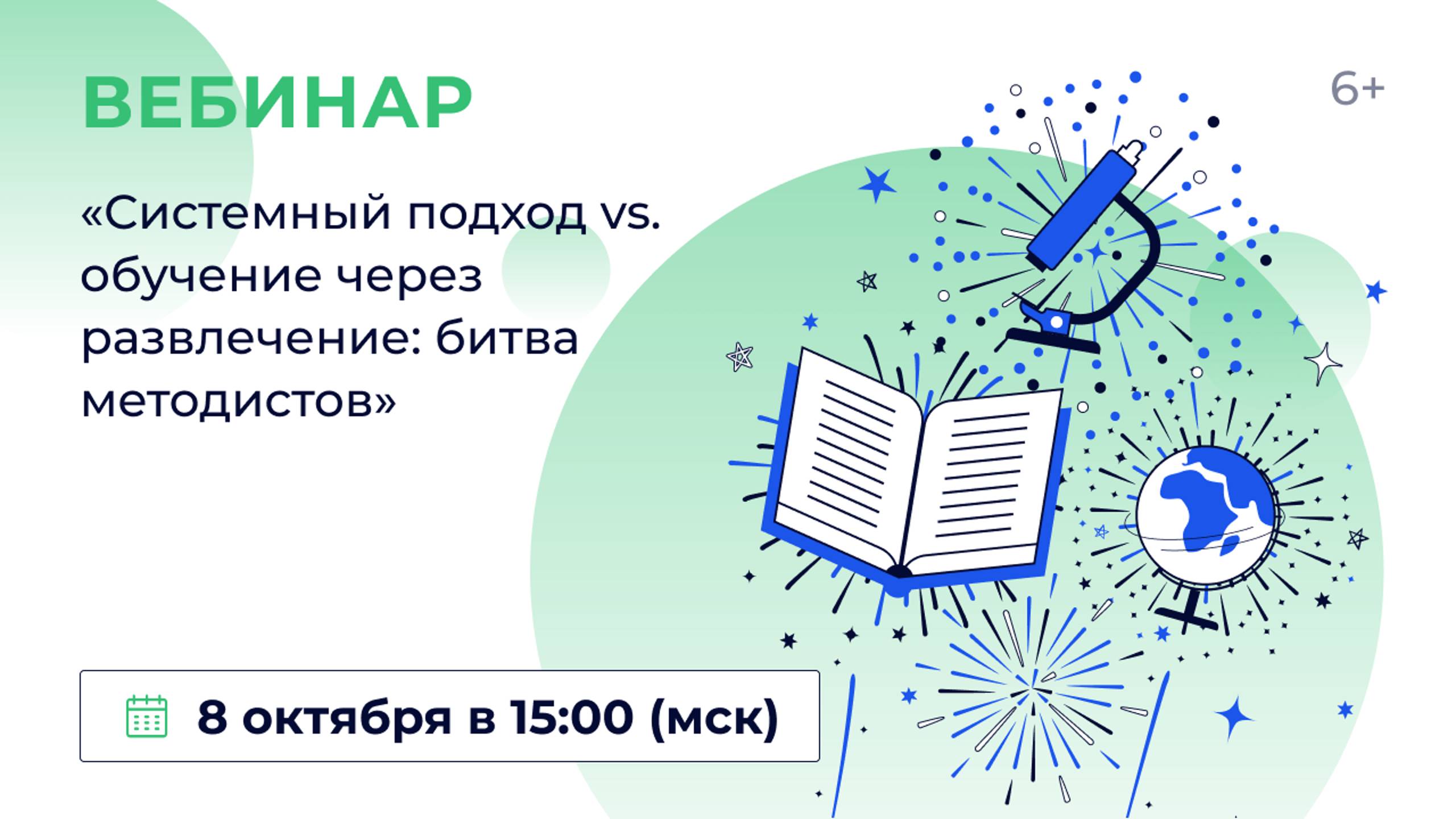 00:00 | Вступление 07:00 | Что важнее: строго следовать утверждённым программам и ориентироваться на планируемые результаты или вовлекать обучающихся в яркие образовательные события? 26:16 | Как оценивать качество образования: поэтапно отслеживая достижение планируемого результата по чётким критериям или по сумме впечатлений и уровню интереса к предмету у обучающихся? ; 40:47 | Какой должна быть ежедневная практика образования: в формате современного урока или в виде игровой модели? 8 октября в 15:00 (мск) приглашаем учителей, преподавателей организаций СПО, методистов, педагогов дополнительного образования, руководителей методических объединений, заместителей директоров и руководителей образовательных организаций на вебинар «Системный подход vs. обучение через развлечение: битва методистов». В образовании используется множество разных подходов, которые порой вступают в противоречие друг с другом, заставляя педагогическое сообщество размышлять, какой же из них приведёт к лучшему результату. В оригинальном и захватывающем формате дискуссии — «битва методистов» — наши эксперты попытаются разрешить самые разные противоречия. Что важнее: строго следовать утверждённым программам и ориентироваться на планируемые результаты или вовлекать обучающихся в яркие образовательные события? Как оценивать качество образования: поэтапно отслеживая достижение планируемого результата по чётким критериям или по сумме впечатлений и уровню интереса к предмету у обучающихся? Какой должна быть ежедневная практика образования: в формате современного урока или в виде игровой модели? Спикеры: Наталья Ивановна Кривых, кандидат педагогических наук, заместитель директора дирекции образовательных программ проектного офиса «Платформа», г. Астрахань, и Олеся Вячеславовна Гончарова, кандидат исторических наук, ведущий методист «ЯКласс». Модератор вебинара — Татьяна Меньщикова, главный методист «ЯКласс». Участие в вебинаре бесплатное.