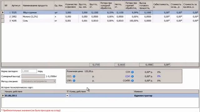 3.2 Создание блюд и заполнение технологических карт