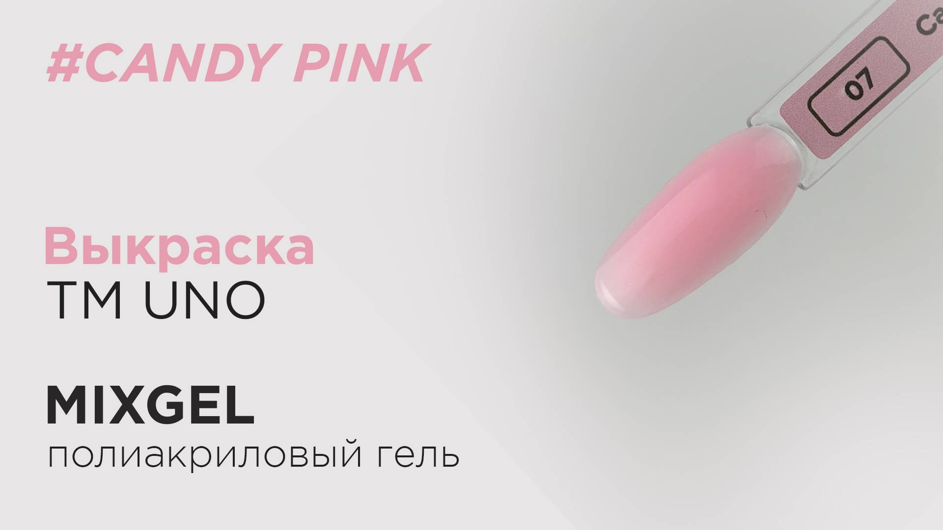 Выкраска: Полиакриловый гель (полигель) MIXGEL UNO Candy Pink, камуфлирующий.