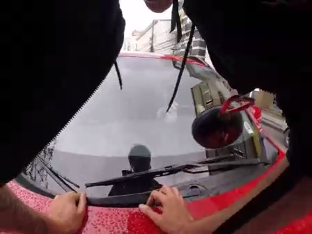 В Бразилии неадекват на красном Mitsubishi наехал на велосипедиста, а затем прокатил его на капоте своего автомобиля. #мицубиси #капот #чудак