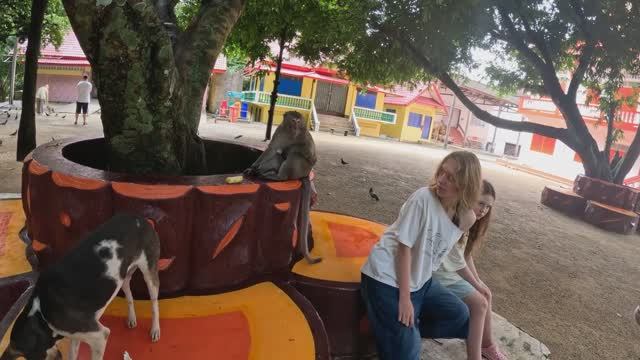 Обезьяны у пещерного храма Ват Суван Куха, Таиланд.