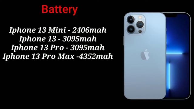 Namaskaar Dosto, is video mein maine aapse baat ki hai Apple iPhone 13 Series ke baare mein jaha pe hai latest iPhone 13 Mini, iPhone 13, iPhone 13 Pro aur iPhone 13 Pro Max. Yeh sabhi phones hai latest 2021 lineup mein Appke ki taraf se jaha pe A15 Bionic Chip, Super Retina XDR OLED ProMotion Display, Flagship cameras jaise bahut se features hai aur MagSafe bhi available hai. iPhone 13 Lineup mein 5G bhi available hai. Mujhe umeed hai ki aapko iPhone 13 ki yeh video bahut pasand aayegi jaha pe aapke liye iPhone 13 series ki unboxing bhi bahut jaldi aane waale hai. India Pricing of Apple iPhone 13 Series: #iPhone13Mini 128GB - 69,900₹ 256GB - 79,900₹ 512GB - 99,900₹ #iPhone13 128GB - 79,900₹ 256GB - 89,900₹ 512GB - 109,900₹ #iPhone13Pro 128GB - 1,19,900₹ 256GB - 1,29,900₹ 512GB - 1,49,900₹ 1TB - 1,69,900₹ #iPhone13ProMax 128GB - 1,29,900₹ 256GB - 1,39,900₹ 512GB - 1,59,900 iPhone 13 Pro Max VS iPhone 12 Pro Max This video I am going to show you the full specification comparison between the two smartphones iPhone 13 Pro Max VS iPhone 12 Pro Max So if you are new my channel Please Subscribe Like Comment & also Share on your own Opinion. Smart Compare can not guarantee that the information on this video is 100% correct. Because the All Information are Collect From internet and official Smartphone Page. Specification : iPhone 13 Pro Max VS iPhone 12 Pro Max A. iPhone 13 Pro Max 1. Display Type : Super Retina XDR OLED 2. Display Size : 6.7 inches 3. Chipset : Apple A15 Bionic (5 nm) 4. Graphics : Apple GPU (5 core) 5. Main Camera : 12MP + 12MP + 12MP + LiDAR 6. Selfie Camera : 12 MP 7. Internal : 128GB 8GB RAM, 256GB 8GB RAM, 512GB 8GB RAM 8. Fingerprint : Face ID 9. Battery : 4352 mAh 10.Price : $1,099 B. iPhone 12 Pro Max 1. Display Type : Super Retina XDR OLED 2. Display Size : 6.7 inches 3. Chipset : Apple A14 Bionic (5 nm) 4. Graphics : Apple GPU (4 core) 5. Main Camera : 12MP + 12MP + 12MP + LiDAR 6. Selfie Camera : 12 MP 7. Internal : 128GB 6GB RAM, 256GB 6GB RAM, 512GB 6GB RAM 8. Fingerprint : Face ID 9. Battery : 3687 mAh 10.Price : $1,099 Thanks for watching.