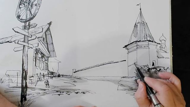 Городская зарисовка Перо Digital editing Ростов Великий Urbansketching