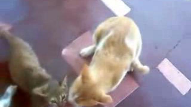 Три кошки, один сочный стэйк, четыре минуты борьбы за сытость. Вы думаете, победила дружба? :))
