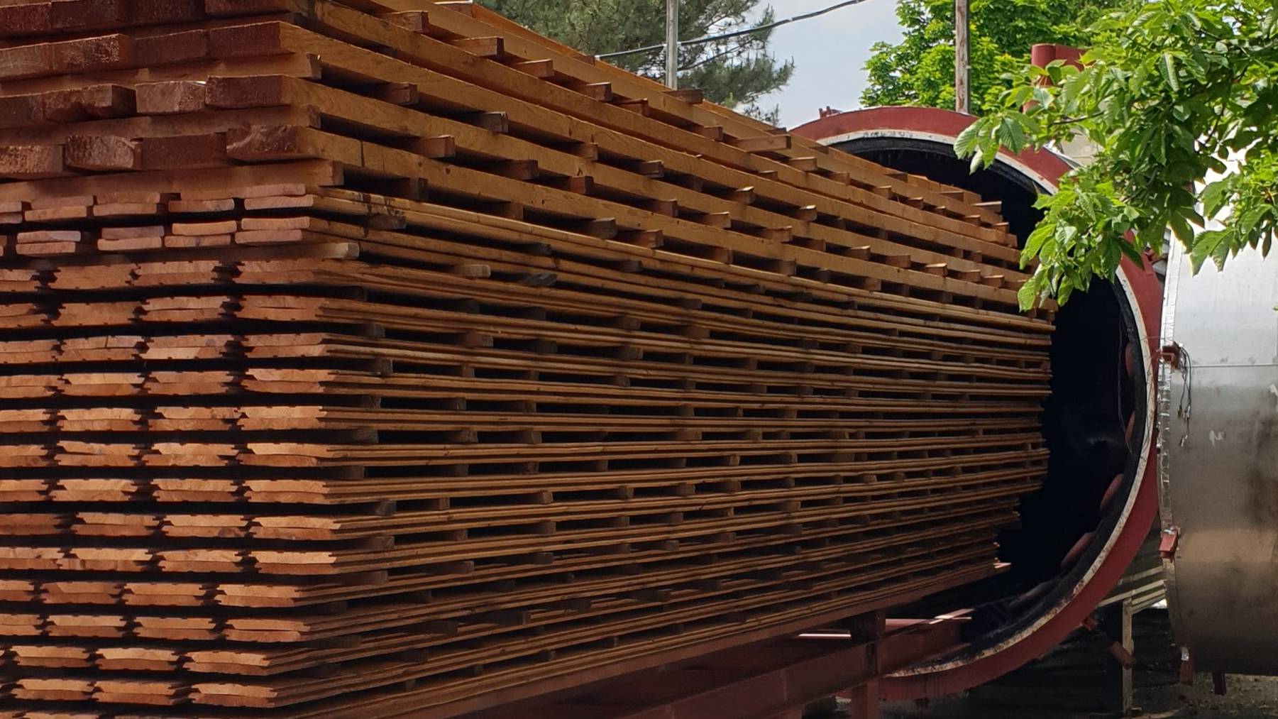 Для получения качественной термодревесины необходимо качественно высушить пиломатериал. Мы создали термокамеру которая объединила в себе три технологии в одной установке - это вакуумная сушка, конвективная сушка плюс термообработка. Если у Вас имеются сушильные камеры для древесины Вам достаточно иметь термокамеру в которой можно досушить лес до 6 % а затем перейти в режим термообработки.