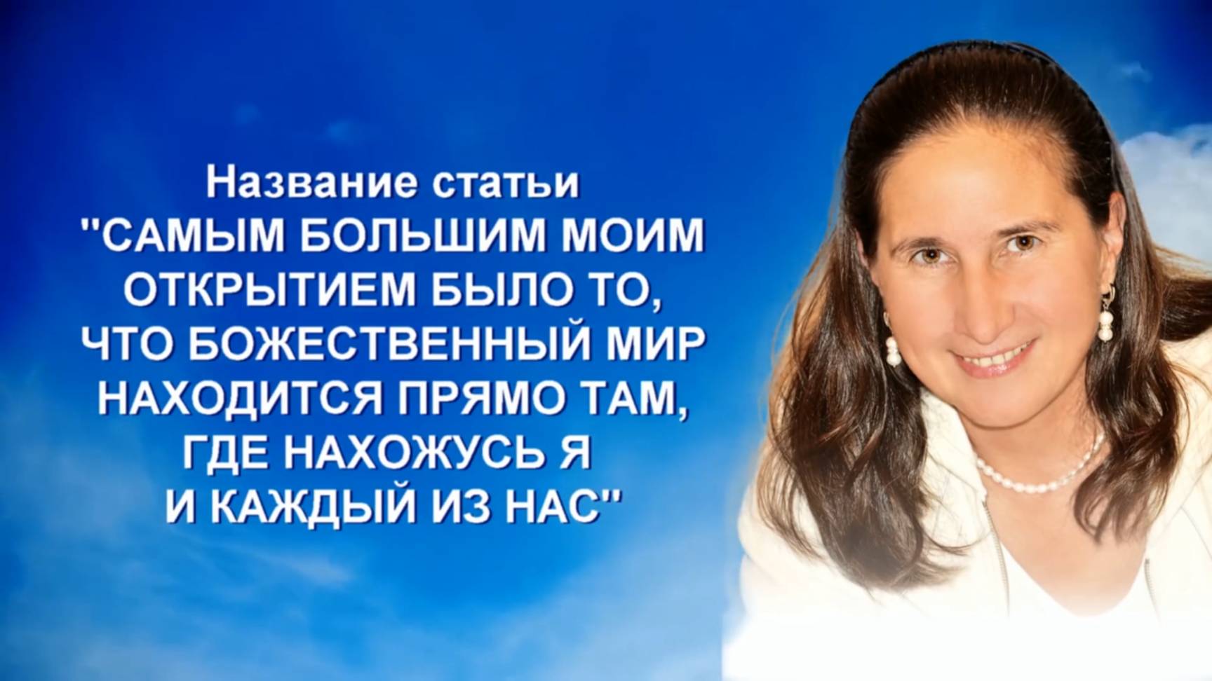 Это видео-версия статьи в американском журнале «Осознанность» («Awareness Magazine») за декабрь 2018 года. В статье рассказывается о четырёх чудесах: 1. Чудо возвращения с того света в 15 лет. 2. Чудо обретения Бога в 40 лет. 3. Чудо по приёму Посланий с Небес. 4. Чудо спасения из огня. Ссылка на оригинал статьи http://awarenessmag.com/images2018NovDec/AwarenessMagazineNovDec2018LowRes.pdf Русский перевод https://sirius-centers.net/books/2018/12/21/index.htm Правда, дом всё-таки сгорел ровно через 6 лет в марте 2018 года... https://rutube.ru/video/652d86c4fc1e4d4e40bee8988e5b144e/ Вместе с домом сгорела уникальная коллекция книг на разных языках https://rutube.ru/video/a615020243b473e6de3240f9b0a40803/ Автор видео Елена Груздева. Омск, Россия Музыкальное оформление Татьяна Мартыненко, Новосибирск, Россия. Музыка Микаэля Таривердиева и Владимира Косма.