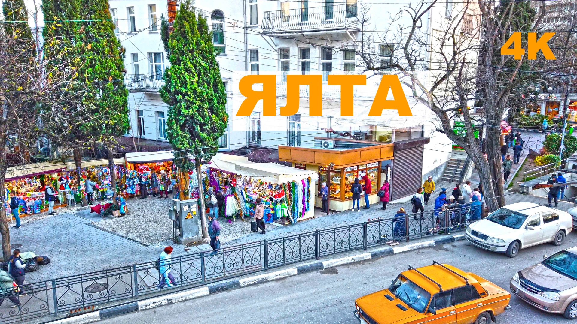 Ялта фантастика. Мандарины в переходе, зима без снега. Продают ёлки. Жираф ест кусты зоопарк Сказка