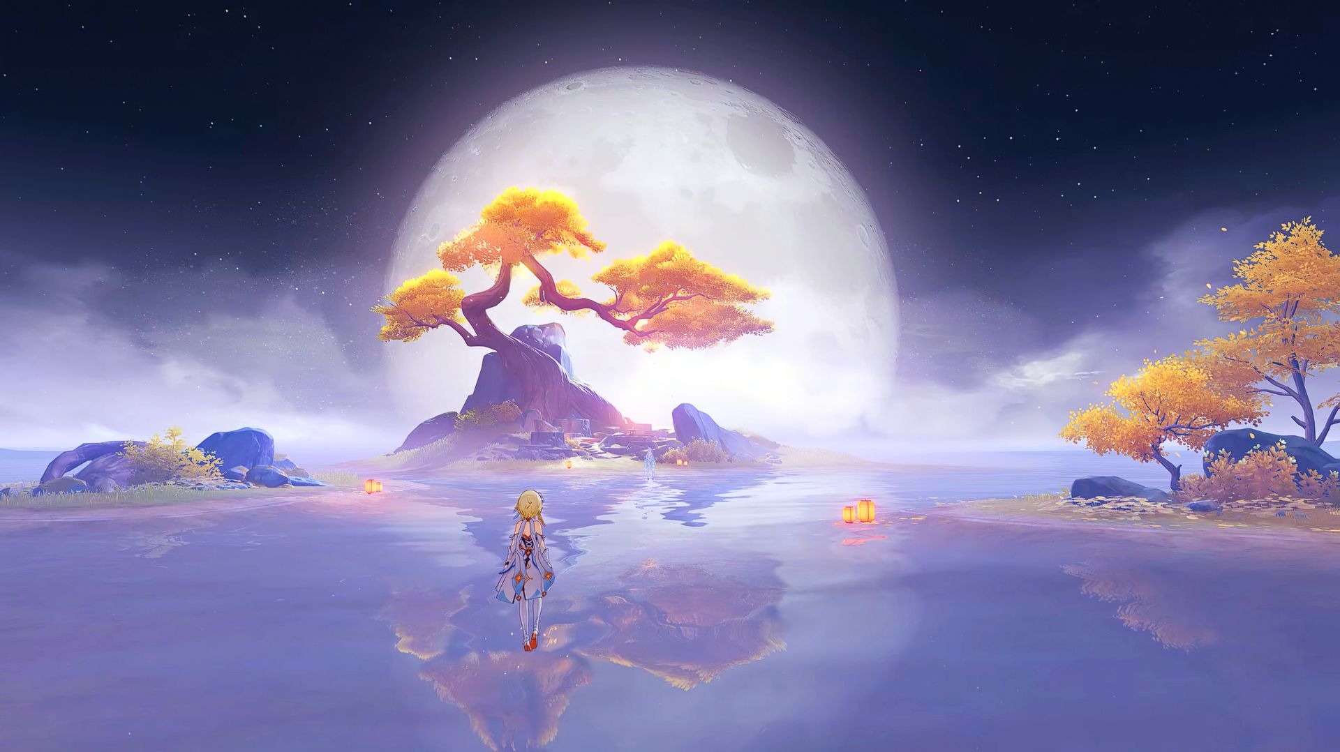 Genshin Impact | Ода серебряной луне, освещённая фонарями — Среди скал