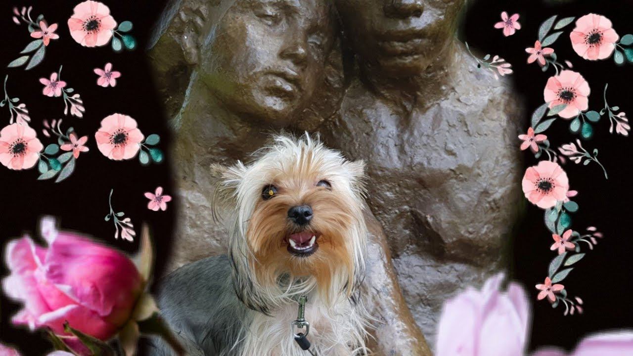 Боня и памятник. #Собака #йорк #парк