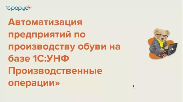 Запись вебинара от 23 ноября 2022 года на тему "Автоматизация предприятий по производству обуви на базе 1С:УНФ. Производственные операции и учет брака". В программе вебинара: создание заказа клиента; формирование заказа на производство со спецификацией; оформление заказа поставщику; работа с документом «Производство»; создание сдельных нарядов и распределение затрат.