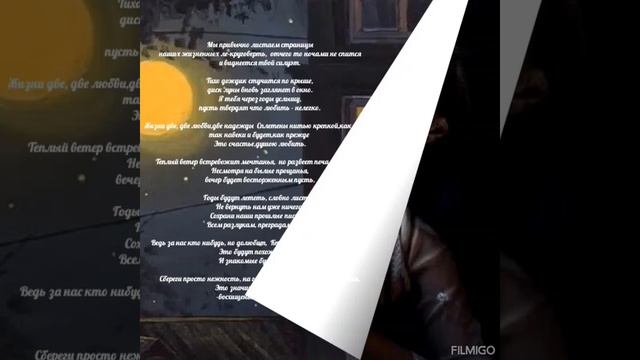 Мы привычно листаем страницы наших жизненных лет-круговерть, отчего то ночами не спится и виднеется твой силуэт. Тихо дождик стучится по крыше, диск луны заглянет вновь в окно. Я тебя через годы услышу, пусть твердят что любить нелегко. Жизни две, две любви, две надежды Сплетены нитью крепкой, как быть? Так навеки и будет,как прежде Это счастье, душою любить. Теплый ветер встревожит мечтанья, но развеет печали и грусть Несмотря на былые прощанья, вечер будет восторженным пусть. Годы будут лететь, словно листья, Не вернуть нам уже ничего, Сохрани наши прошлые письма Всем разлукам, преградам назло. Ведь за нас кто нибудь, но долюбит, Кто то важные скажет слова, Это будут похожие люди, И знакомые будут глаза. Сбереги просто нежность, на годы книгу нашей любви напиши. Это значит поистине много -восхищенье любимой души.