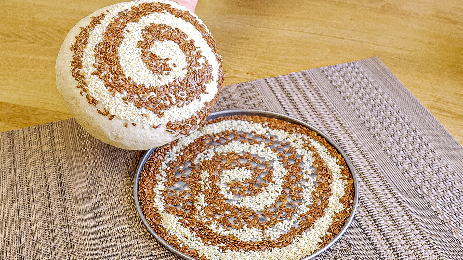 Мука (500 г). Соль (9 г) + сухие дрожжи (9 г). Горячая вода 50 °C (340 мл) Замешиваем тесто. Смазать растительным маслом. Накрываем тесто и оставляем на 40 минут. Семена льна и кунжута Оставляем на 20 минут. Надрезаем тесто. Выпекаем 30 минут при 240 °C. Хлеб получился с хрустящей вкусной корочкой и шикарным мякишем. Обязательно попробуйте испечь! ? Приятного аппетита ! #рецептхлеба #простойхлеб #какприготовитьпростойхлеб #хлебизпростыхингредиентов #рецептвыпечки