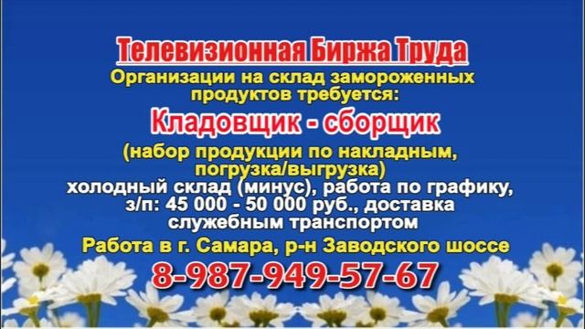Вакансии и телефоны прямых работодателей в специализированной программе по трудоустройству "Телевизионная Биржа Труда" - г.САМАРА, г.ТОЛЬЯТТИ