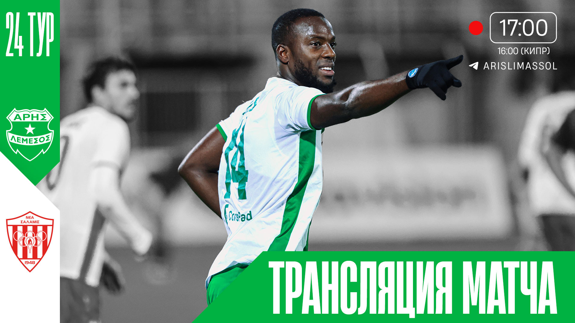Матч 24-го тура Чемпионата Кипра по футболу. «Арис» играет против «Неа Саламины» на «Альфамега Стэдиум» в Лимасоле. Давайте поддержим «Арис» в этом матче! Вперёд, любимая команда! Подписывайтесь на официальный телеграм-канал «Ариса» — t.me/arislimassol