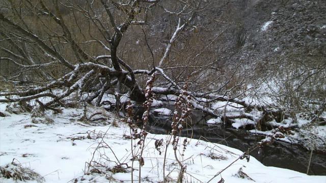 Природа, лес, ручей, зима, снег.