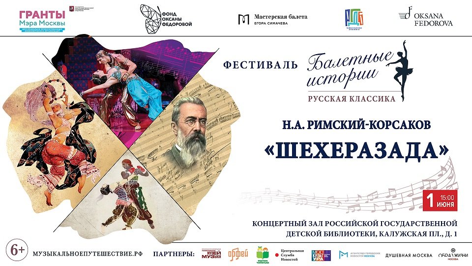 Друзья, делимся самыми яркими кадрами с арт-постановки "История балета "Шехеразада" Н. А. Римского-Корсакова", которая состоялась 1 июня 2023 года - с Международный день защиты детей в Российской государственной детской библиотеке (РГДБ) в рамках фестиваля «Балетные истории: русская классика», который проводит фонд Оксаны Федоровой в сотрудничестве с РГДБ и Мастерской балета Егора Симачева при поддержке Гранта Мэра Москвы. Захватывающий спектакль, объединивший волшебство балета, музыки и литературы на сцене РГДБ воплотили Егор Симачев - режиссер-постановщик Фестиваля, артист Большого театра, выступивший в роли С. Дягилева, Оксана Федорова - Мисс Вселенная, телеведущая, певица, основатель благотворительного фонда, выступившая в роли Шехеразады, а также юные балерины из «Мастерской балета Егора Симачева» и музыканты из ЦМШ- Академии исполнительского искусства, МССМШ им. Гнесиных и ДМШ им. М. М. Ипполитова-Иванова. Литературно-театральный контекст воплотили Федор Ручков, ученик Мастерской художественного чтения Яны Поплавской в РГДБ, Федор Бородин и Сергей Иванов. А все новости проекта "Балетные истории: русская классика" , фото и видеоролики на сайте проекта: https://музыкальноепутешествие.рф/балет