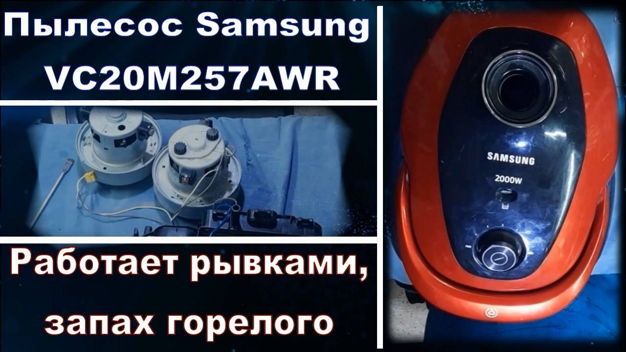 VC002 Пылесос Samsung VC20M257AWR работает рывками, запах гари, как разобрать, как заменить мотор
