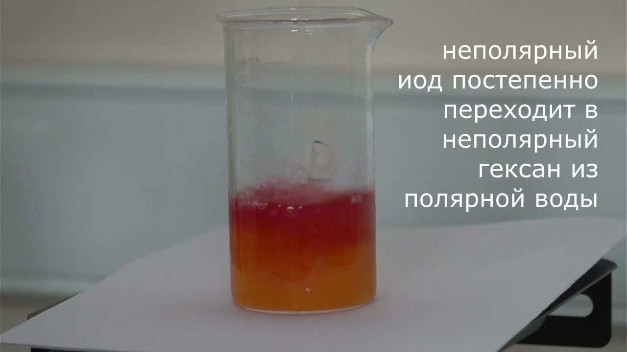 Экстракция иода неполярным растворителем (гексан)